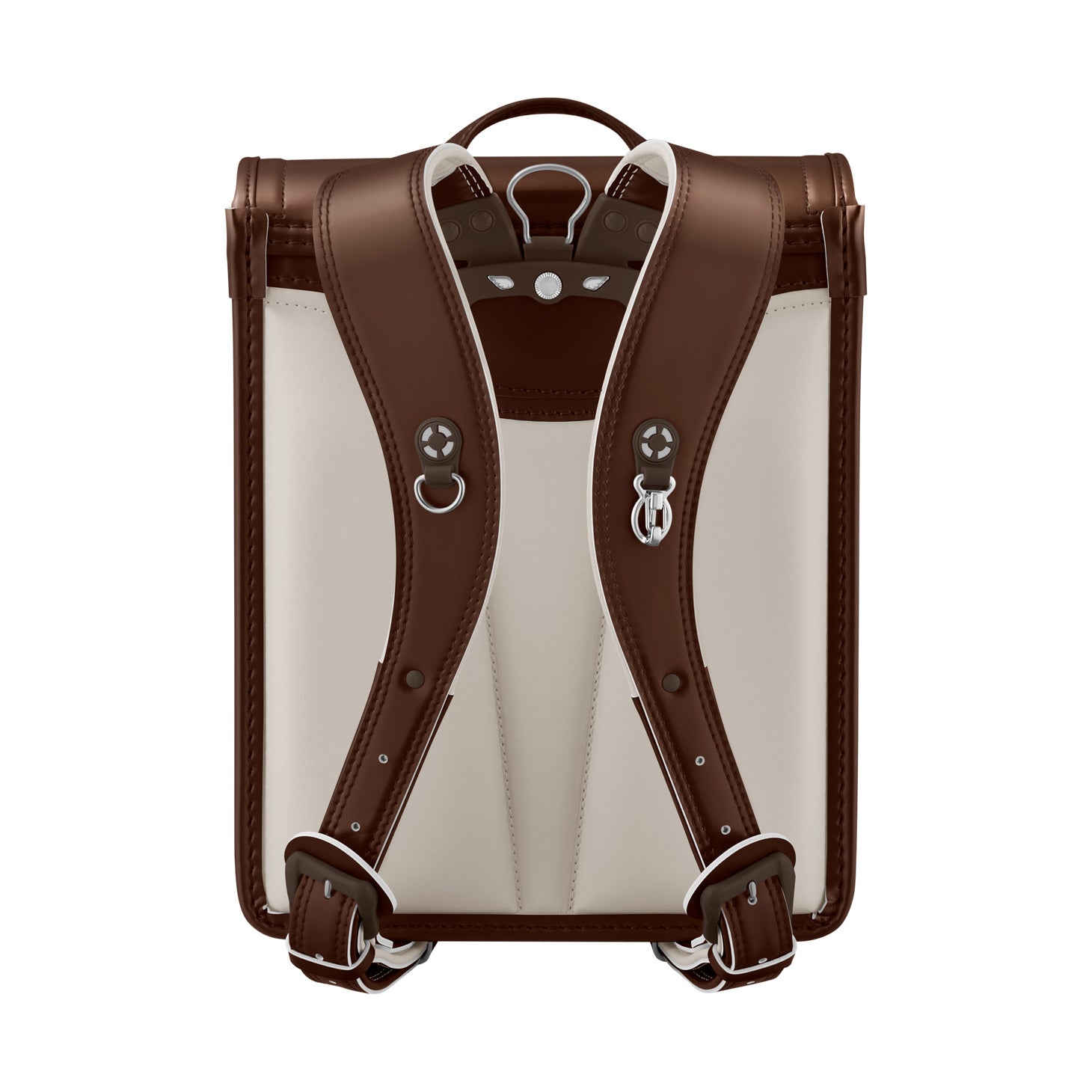 背あてと肩ベルト、下ベルト裏に、吸湿と放湿を繰り返す合成皮革「ブレスレザーⓇ」を採用。従来品に比べ通気性が高く、背中のムレを軽減します。