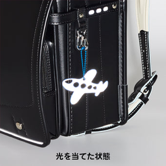 ランドセルの肩ベルトのリングに取りつけられるフックつき。