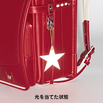 ランドセルの肩ベルトのリングに取りつけられるフックつき。