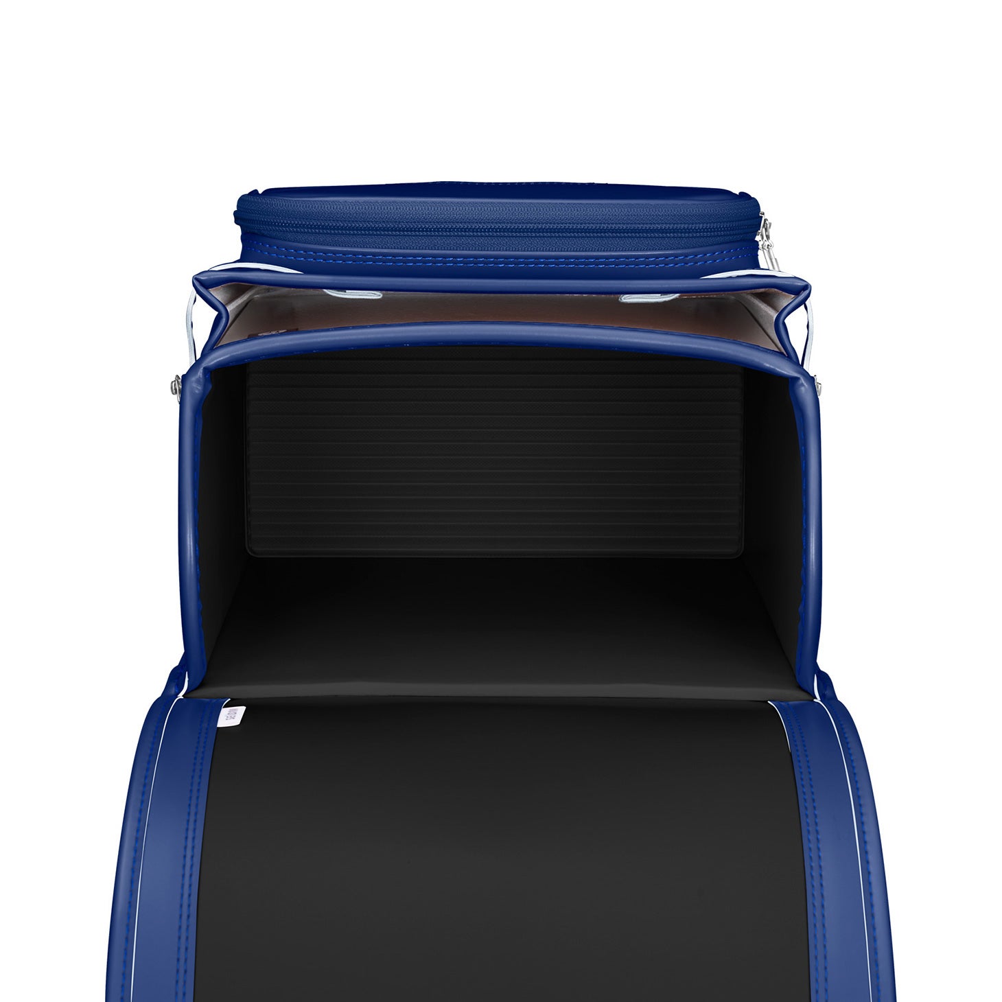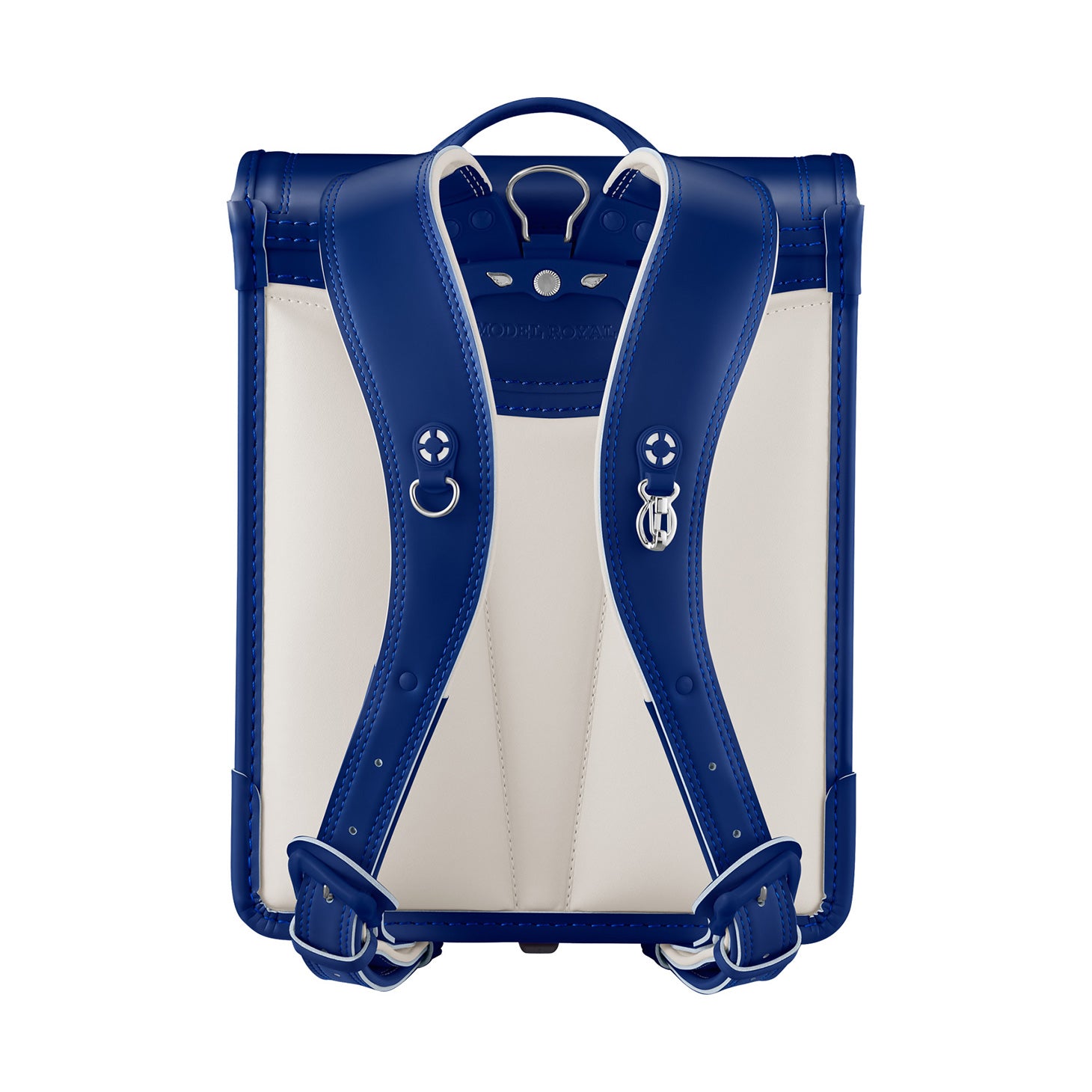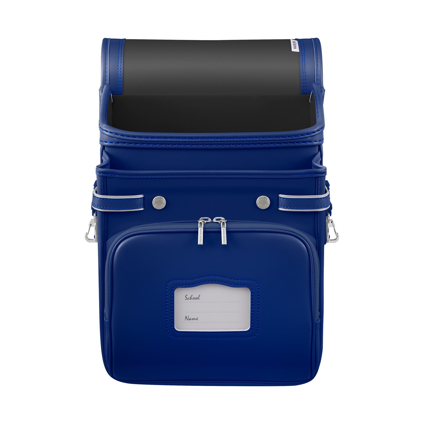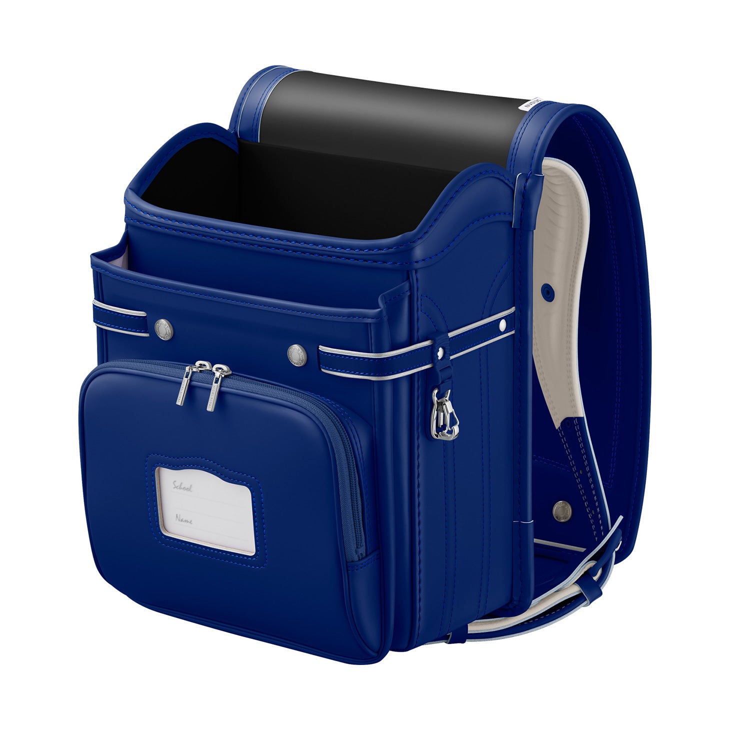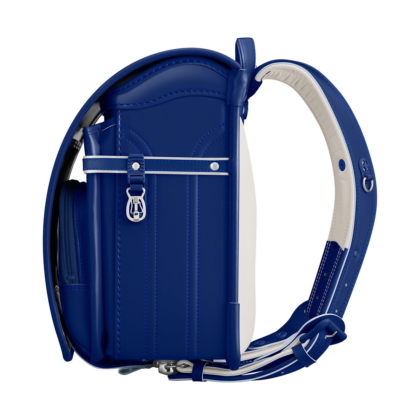 どのカラーを選んでも、落ち着いたイメージを保つシンプルなデザインが特長です。サイドには立体的な「イチョウ盛り」など、本革ランドセルなどに使われる伝統的な加工もプラスし、深みのあるデザインに仕上げています。
