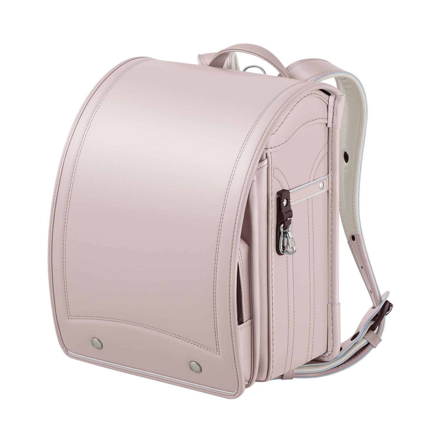 どのカラーを選んでも、落ち着いたイメージを保つシンプルなデザインが特長です。サイドには立体的な「イチョウ盛り」など、本革ランドセルなどに使われる伝統的な加工もプラスし、深みのあるデザインに仕上げています。