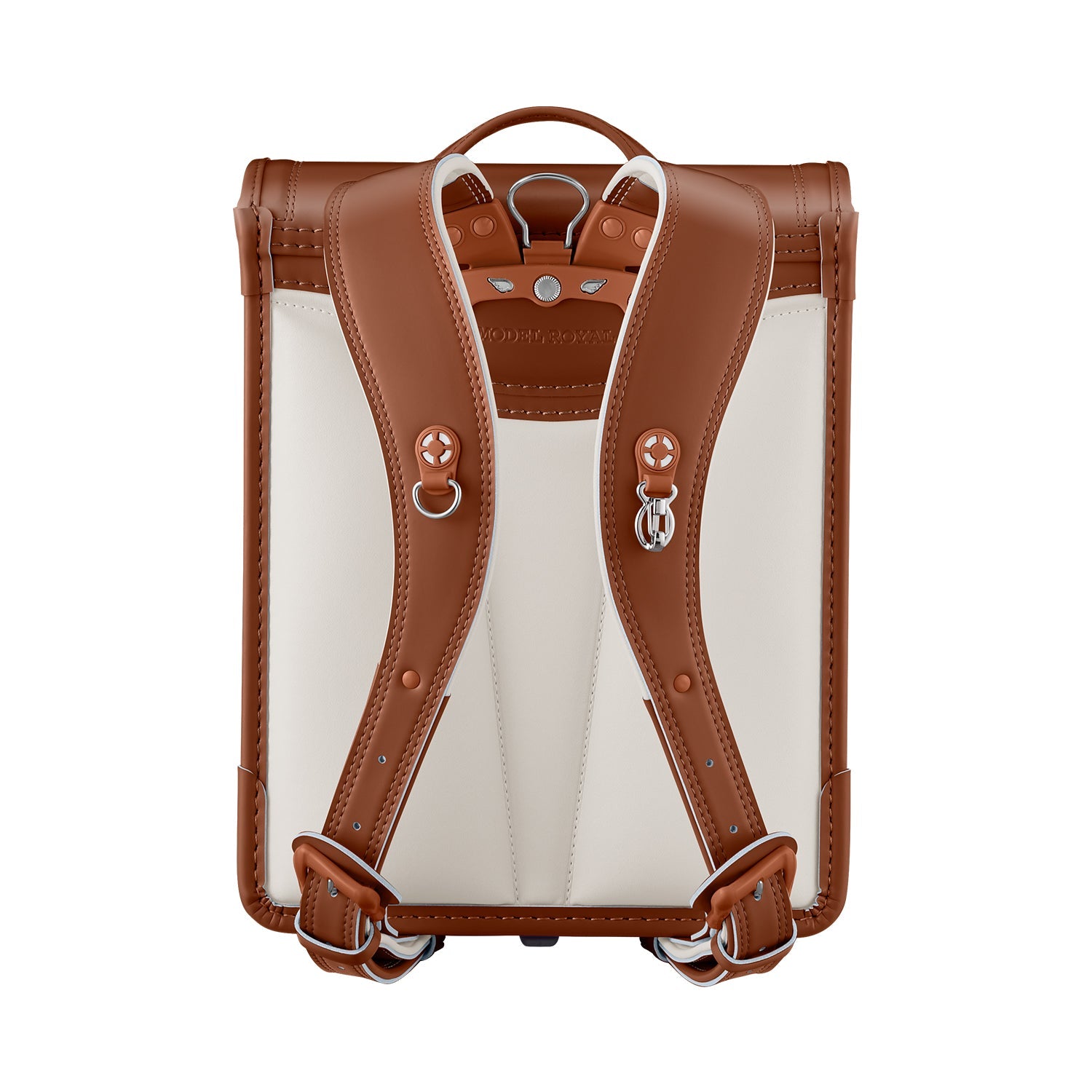 どのカラーを選んでも、落ち着いたイメージを保つシンプルなデザインが特長です。サイドには立体的な「イチョウ盛り」など、本革ランドセルなどに使われる伝統的な加工もプラスし、深みのあるデザインに仕上げています。