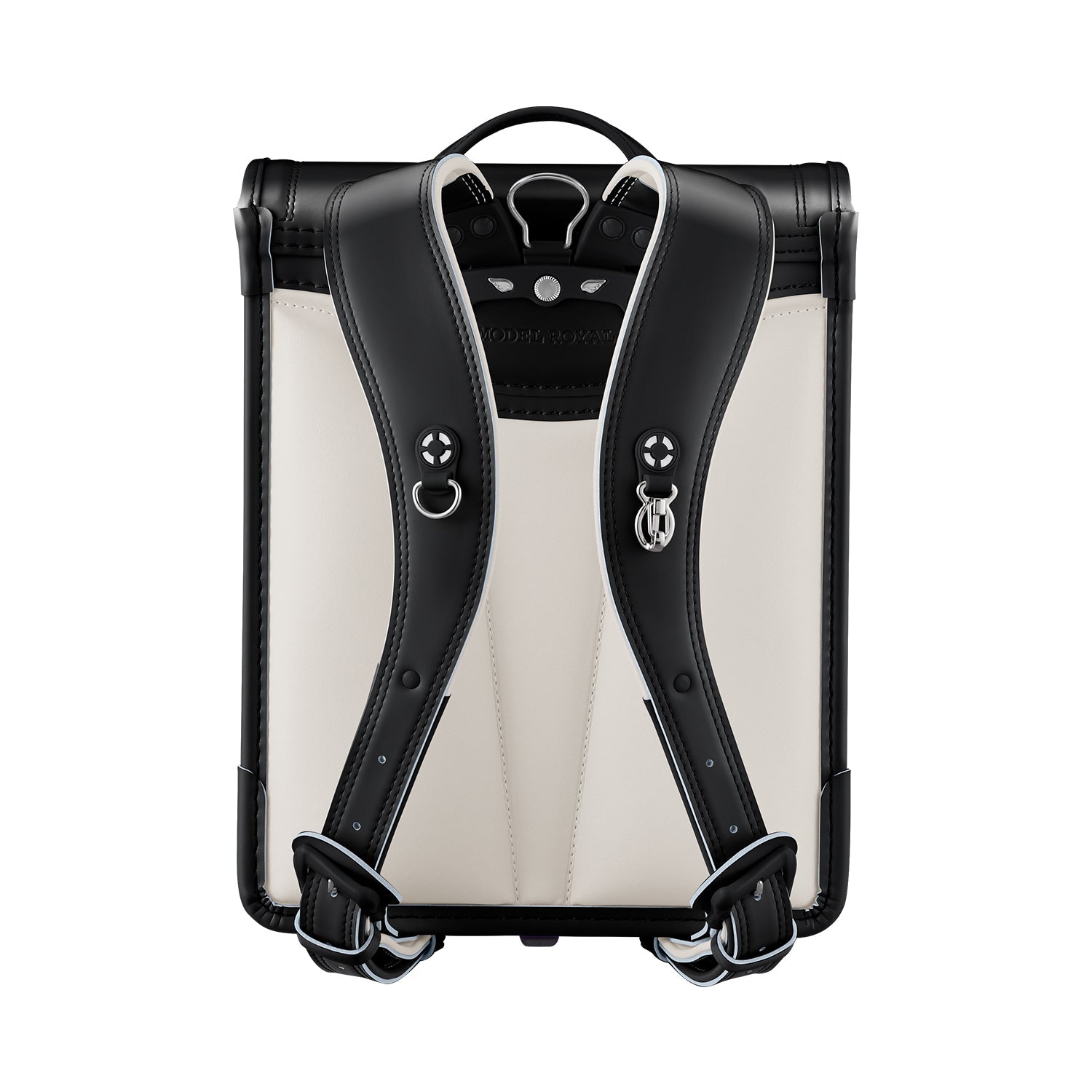 背あてと肩ベルト、下ベルト裏に、吸湿と放湿を繰り返す合成皮革「ブレスレザーⓇ」を採用。従来品に比べ通気性が高く、背中のムレを軽減します。