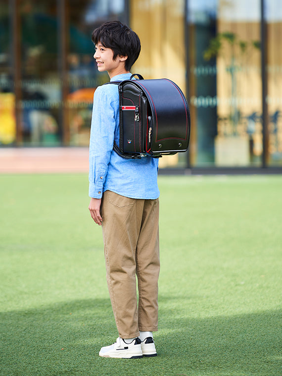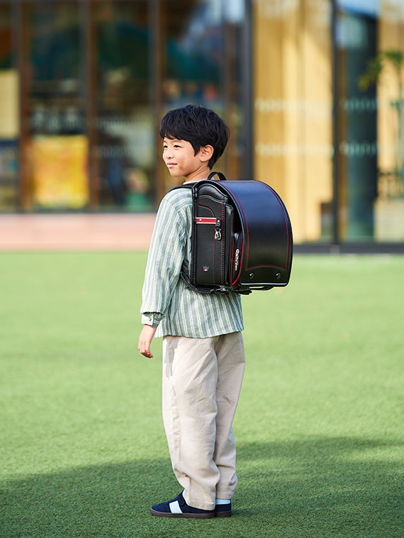 外でランドセルを背負ったときのイメージをご覧いただけます。
