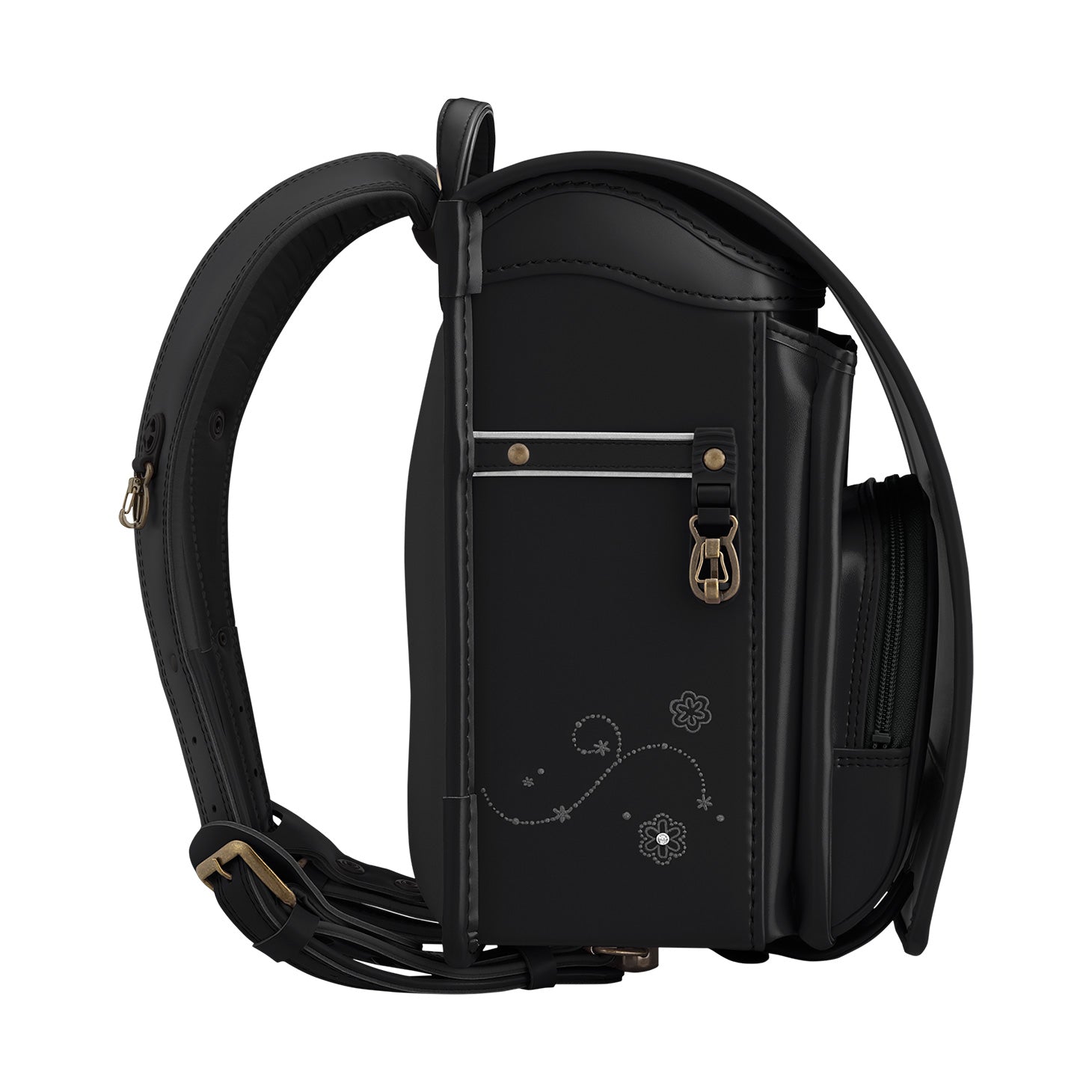 ランドセルの側面にあるフックは、車や自転車による引きずり事故防止のために、強い力で引っ張られると自動的に外れる安全機能付き。セパレート式のため、万が一外れても再度取り付けが可能です。