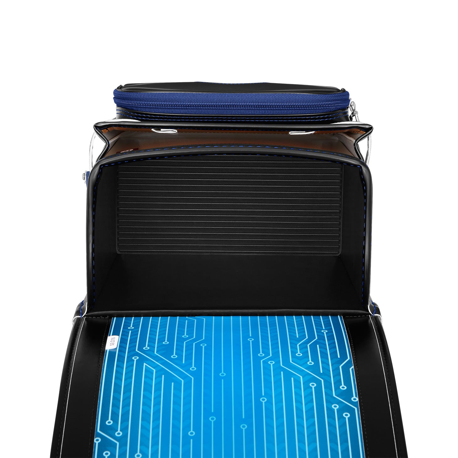宇宙空間のようにブラックで統一された背あて部分。