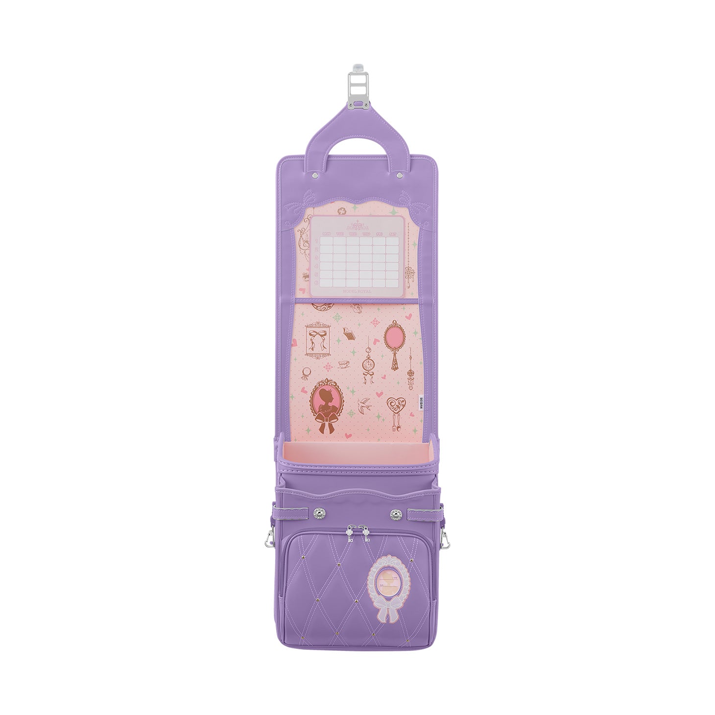 不思議の国に入り込んだようなファンタジックな世界観を表現した「モデルロイヤル アリス」。魔法の鏡やキラキラに輝くお城、リボンのステッチなど、女の子が大好きなかわいらしさをいっぱい詰め込みました。「せみね」や「背中Wクッション」など、快適な背負いごこちにこだわったランドセルです。
