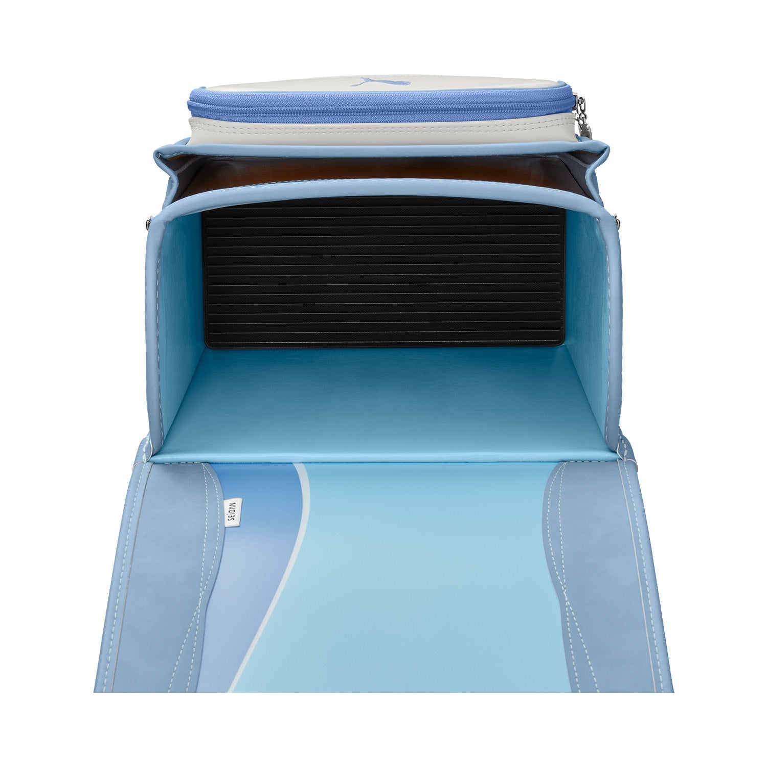 プーマのシューズをイメージした立体的なフォームストライプや、前ポケットの生地切り替えなど、ツートーンカラーのスタイリッシュなデザインが特長。ジュエルホワイトやゴールドなどアクセントカラーによってさまざまな表情を見せるデザインです。