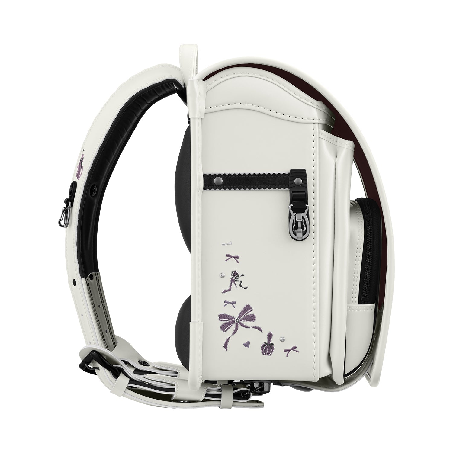 サイドには、リボンや香水のおしゃれな刺しゅう。 -