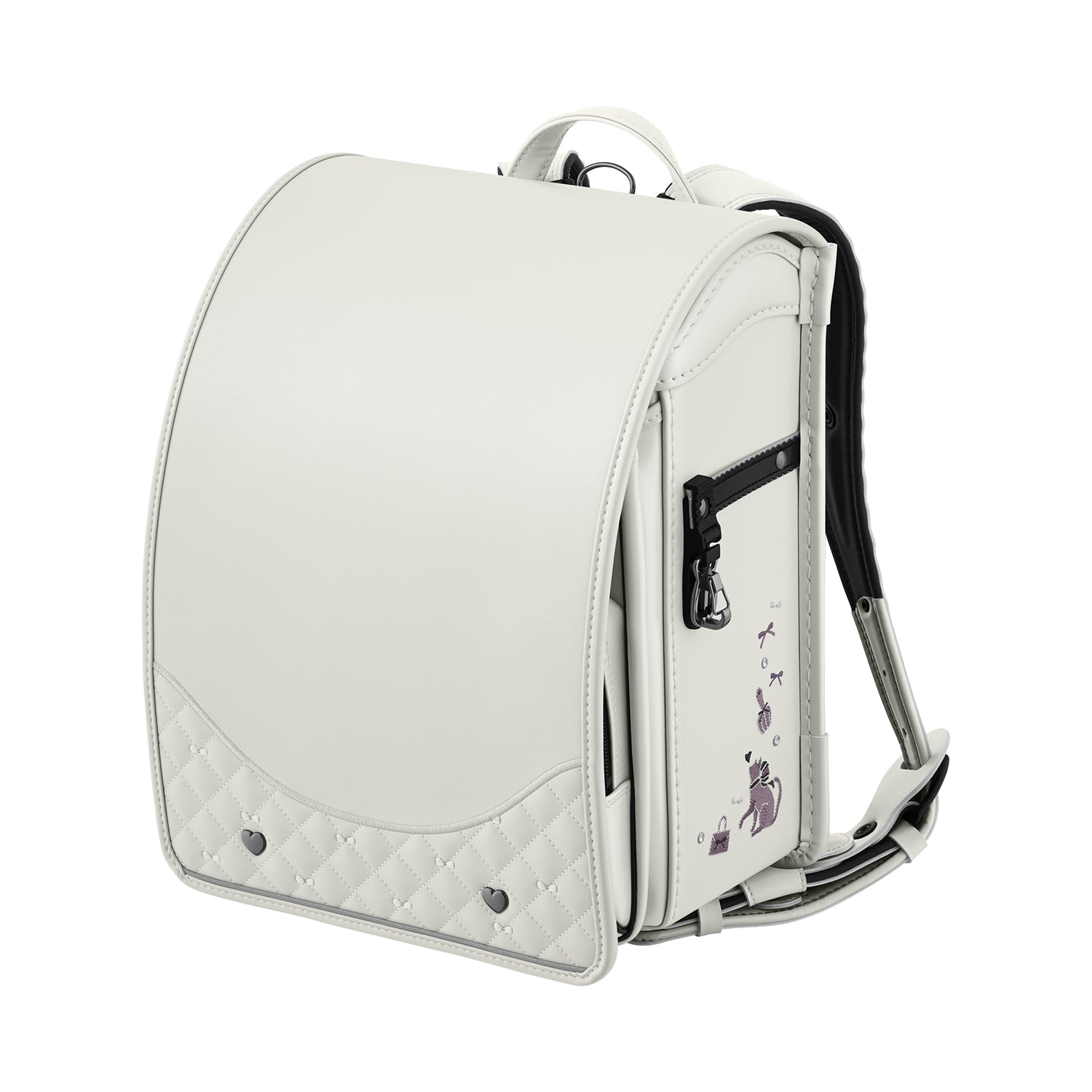 昨シーズンから好みを聞き始めていたものの、毎回答える色やデザインがバラバラだった娘。いよいよ年長になって自分のランドセルを決めていこうとしたときに、娘から「夢で見たピンクで黒猫が書いてあるランドセルが良い」と言われ、イメージぴったりのものがこちらでした!すぐ展示会に申込、実物を見に行っても他のモデルに目もくれず即決。カシスピンクが落ち着いた色で高学年になっても浮かなさそうだし、黒猫もアクセントになって被らないデザインかなと思います。
