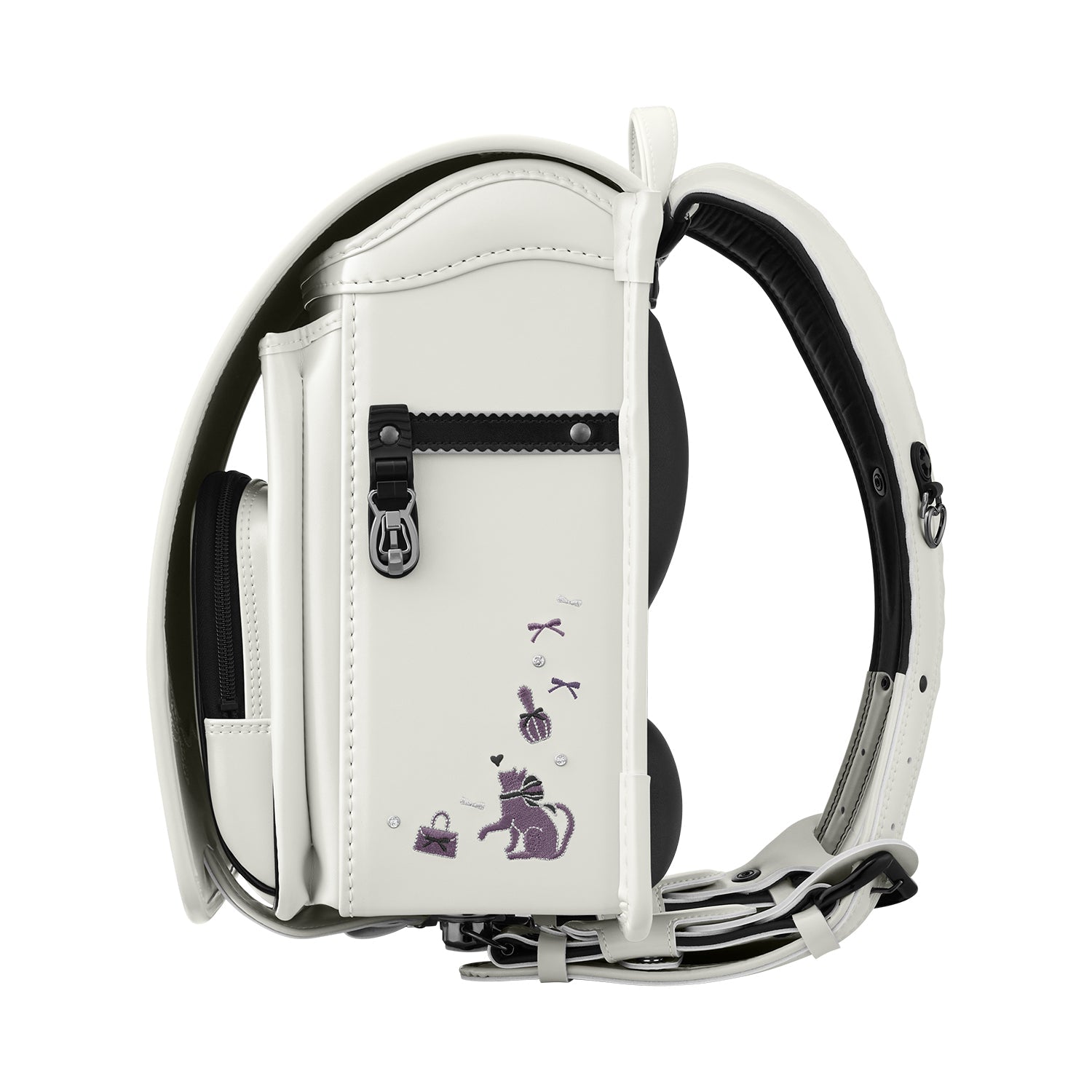 肩ベルトには、猫の刺しゅうがアクセントに。