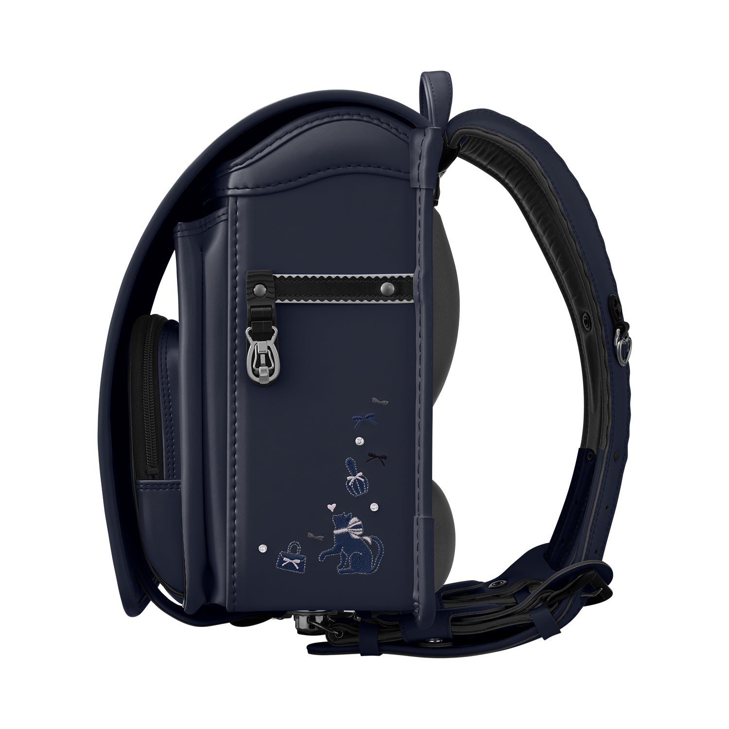 肩ベルトには、猫の刺しゅうがアクセントに。