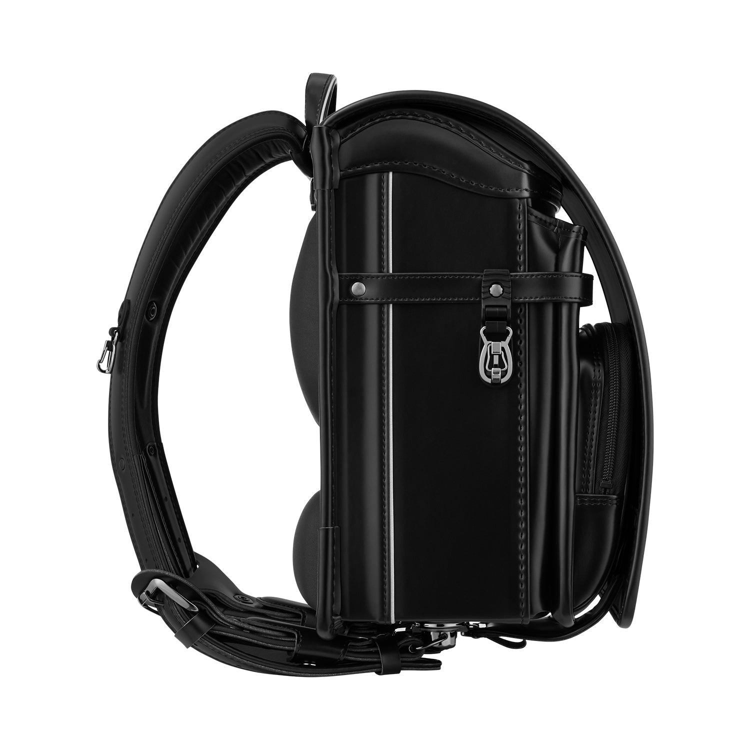 ランドセルの側面にあるフックは、車や自転車による引きずり事故防止のために、強い力で引っ張られると自動的に外れる安全機能付き。セパレート式のため、万が一外れても再度取り付けが可能です。