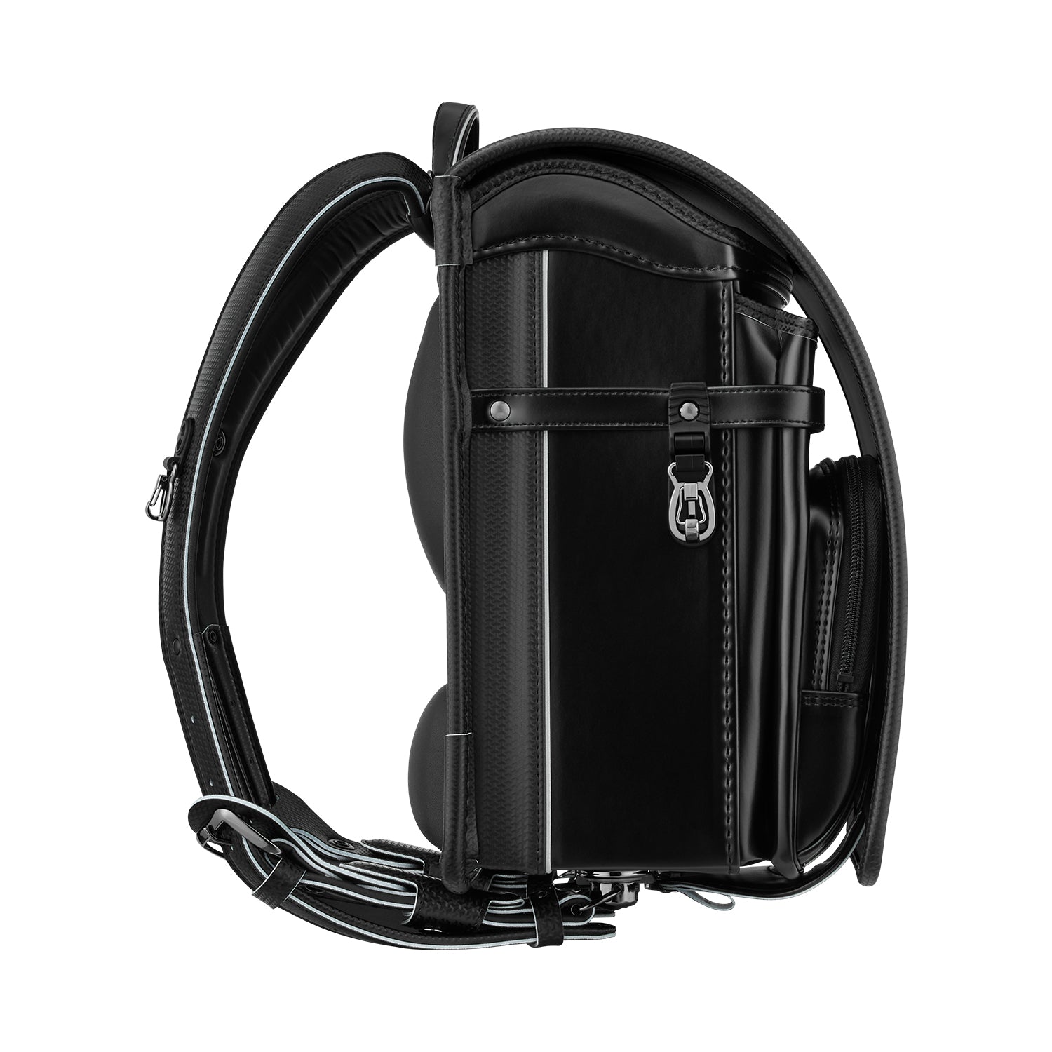 ランドセルの側面にあるフックは、車や自転車による引きずり事故防止のために、強い力で引っ張られると自動的に外れる安全機能付き。セパレート式のため、万が一外れても再度取り付けが可能です。