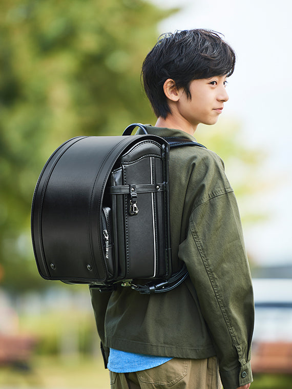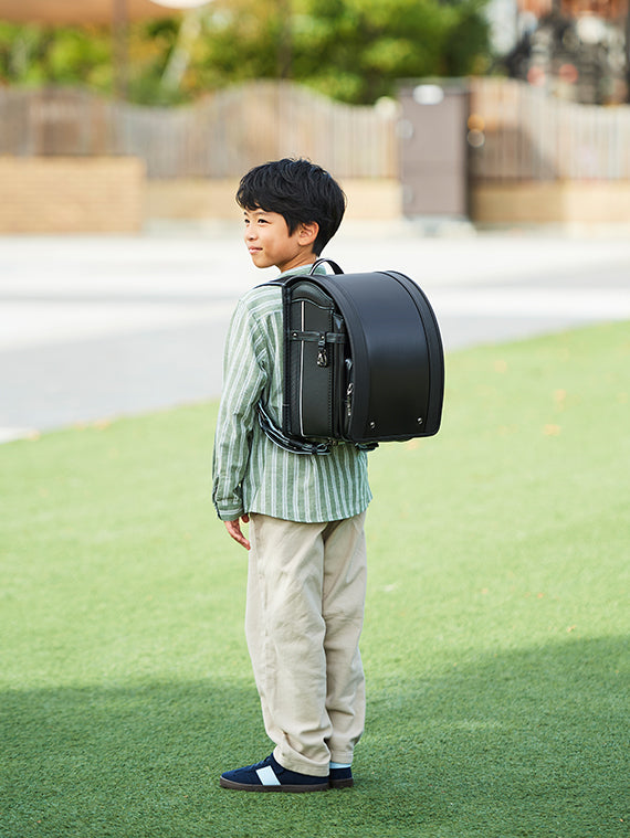 素材の違いと丁寧な縫製技術で、最高峰の「黒いランドセル」を追求した「モデルロイヤル・レジオ ノーチェ」(セイバン直営店・公式サイト限定)。洗練されたミニマルなデザインの中に、丈夫で見た目も美しい生地をへり返した縫製を採用。機能面では、重心を上げてより自然な姿勢に導く「リフトアップ プラス」や、背中への負担軽減と通気性をアップさせる「背中ハニカムクッション」を採用したハイクオリティなランドセルです。