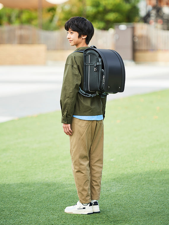 外でランドセルを背負ったときのイメージをご覧いただけます。