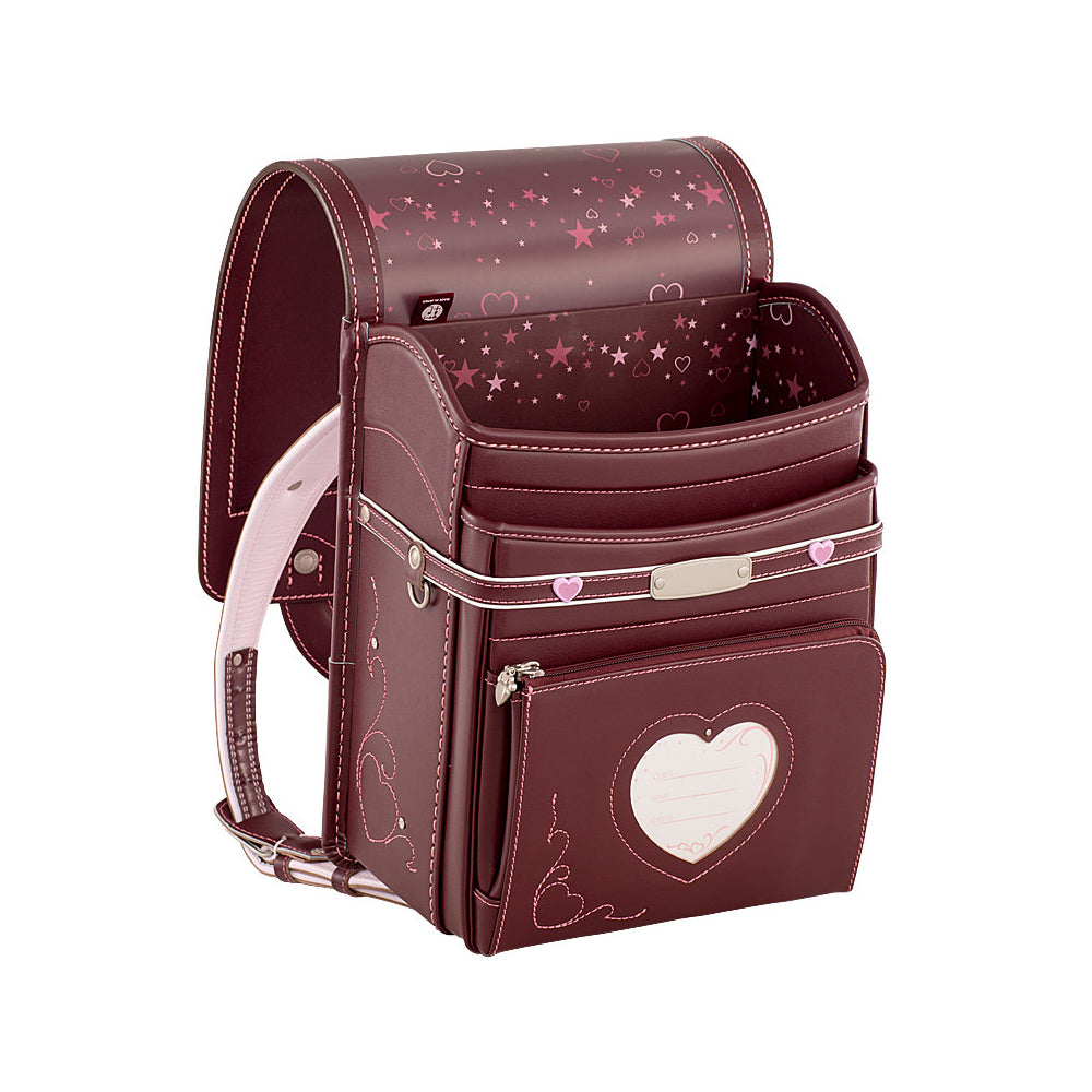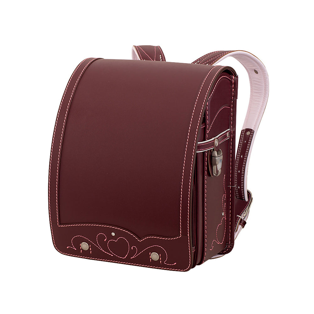 ランドセルの両サイドもハートのステッチワークとキューピックジルコニアで可愛く。 -