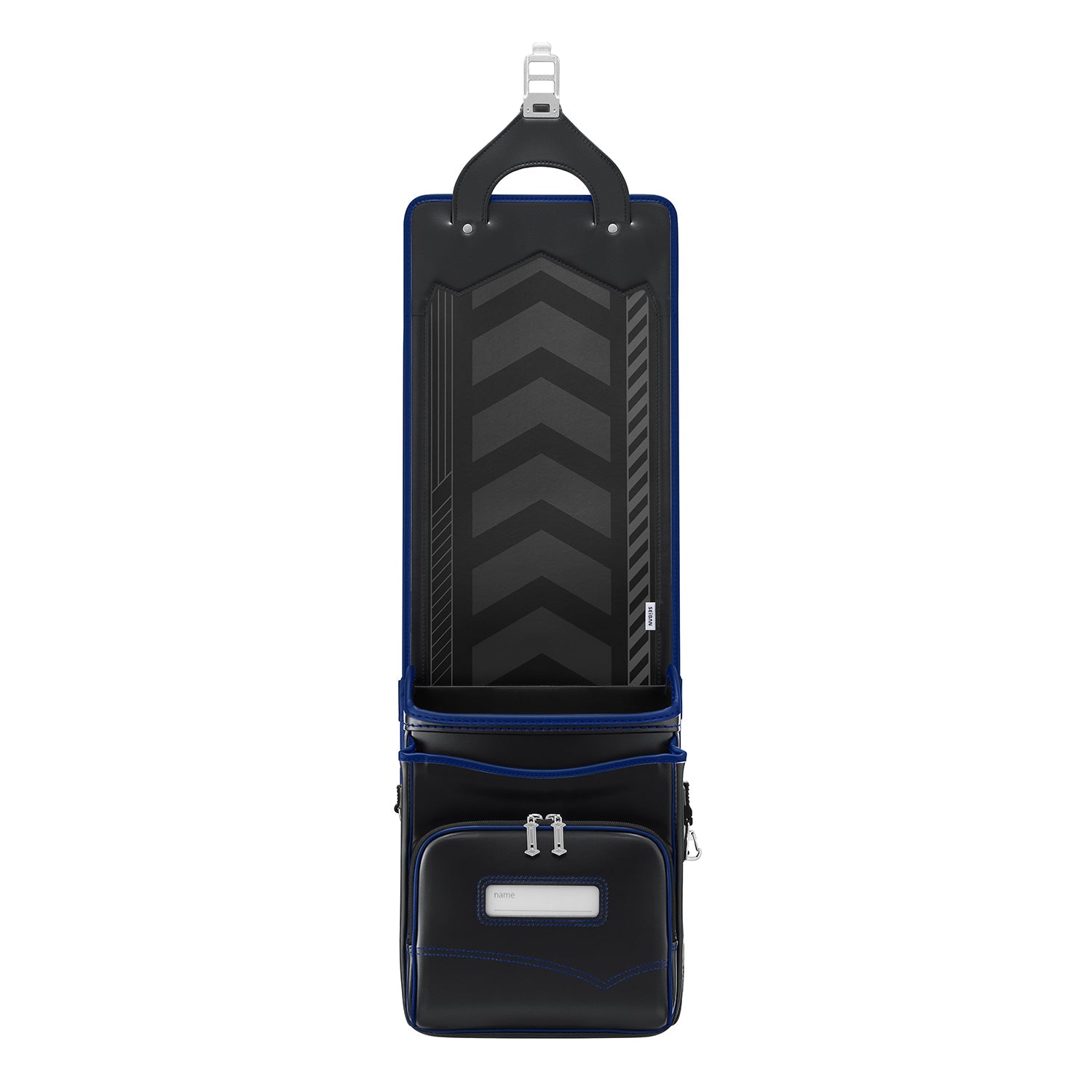 戦うヒーローの剣をイメージした、前ポケットの引き手。 -